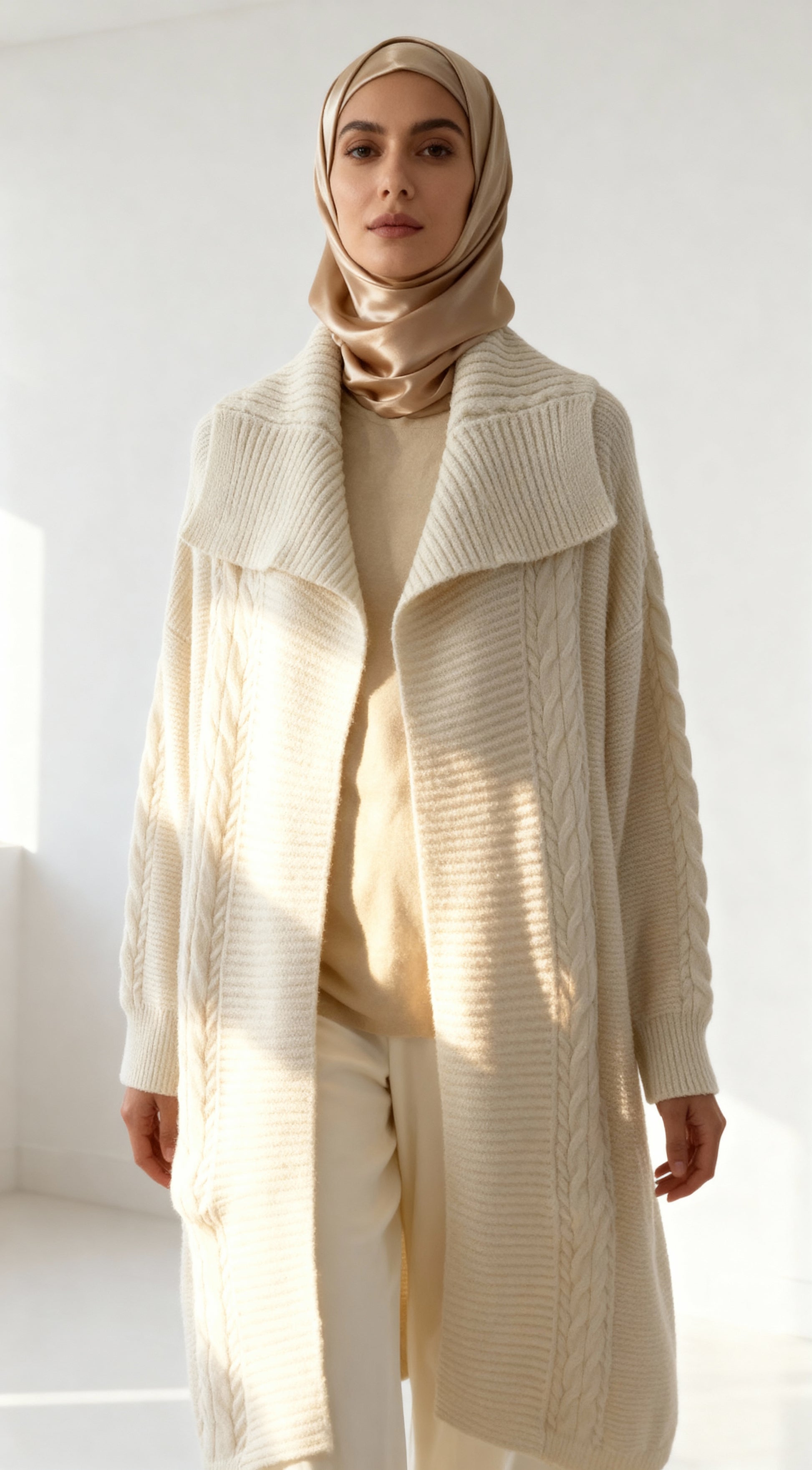 Kalın örgü detayı ve geniş kalıbı sayesinde farklı kombinlerle kolayca uyum sağlar.