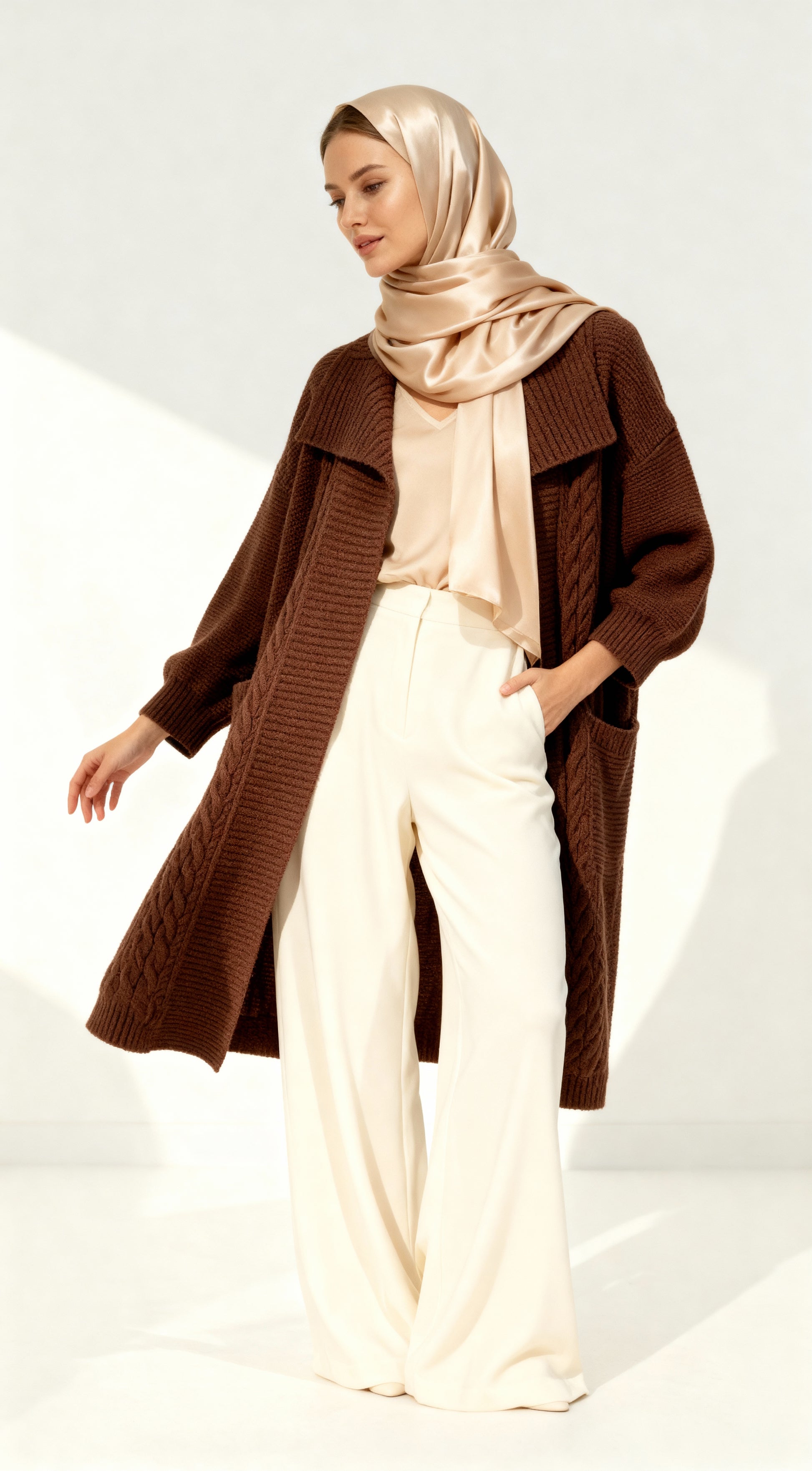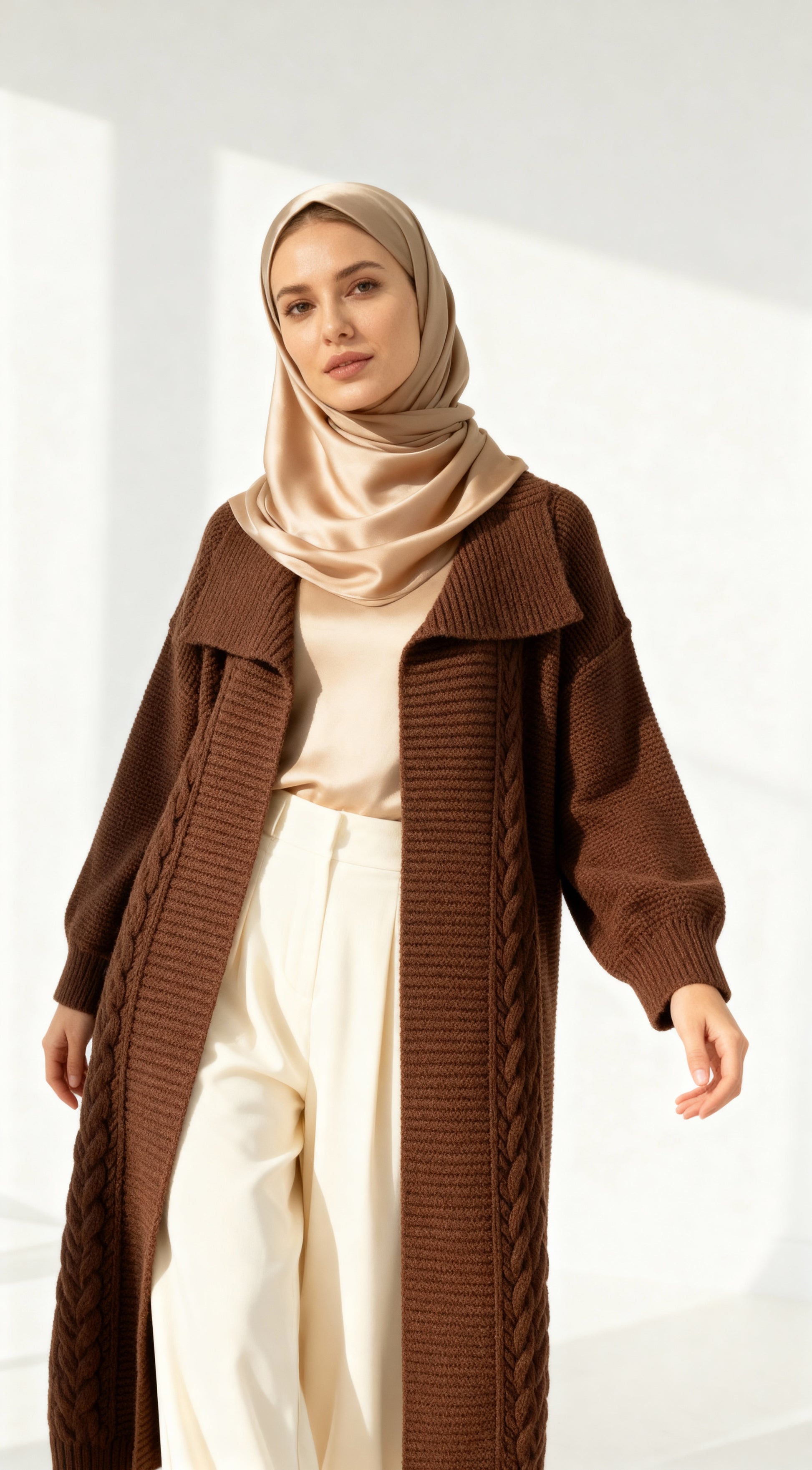 Kalın örgü detayı ve geniş kalıbı sayesinde farklı kombinlerle kolayca uyum sağlar.